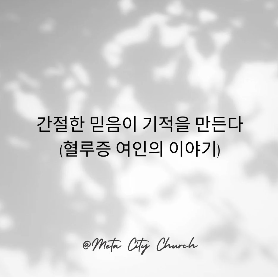 오늘은 혈루증을 앓던 여인의 간절한 믿음에 대한 이야기를 나누려고 합니다.