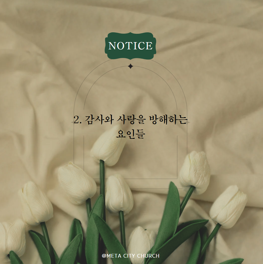 감사는 우리의 마음을 부드럽게 만들고, 삶을 긍정적으로 변화시킵니다. 하나님은 우리가 감사와 사랑을 통해 그분의 뜻을 이루기를 원하십니다.