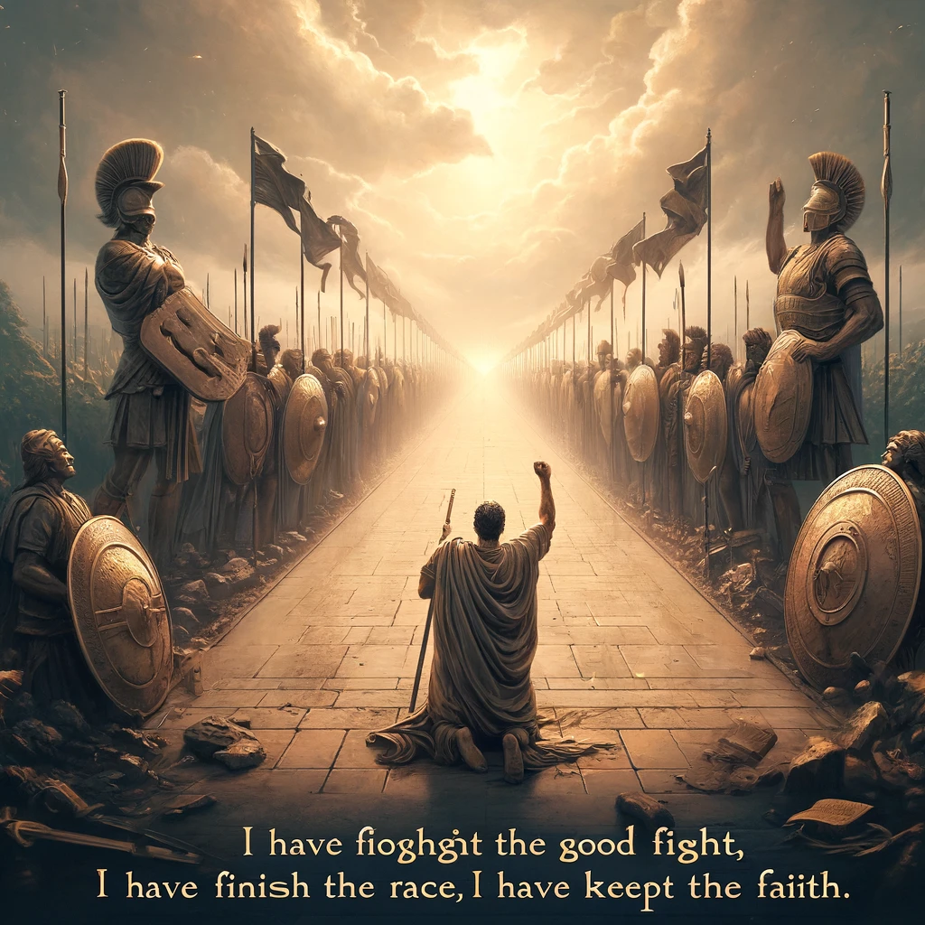 자신의 삶에 대한 바울의 통렬한 성찰, 즉 “내가 선한 싸움을 싸우고 달려갈 길을 마치고 믿음을 지켰으니”는 신실함과 인내의 강력한 모델이 됩니다. 그를 기다리고 있는 “의의 면류관”에 대한 그의 기대는 그의 구원의 확신뿐만 아니라 그리스도의 나타나심을 사모하는 모든 사람을 기다리는 보상에 대해서도 말해줍니다. 이 메시지는 성도들이 영원의 렌즈를 통해 자신의 삶을 바라보고, 근면하고 성실하게 하나님이 주신 사명을 완수하기 위해 노력하도록 격려합니다. 이는 우리의 유산을 생각하게 하고, 영원한 중요성을 지닌 것에 투자하고 신앙의 횃불을 다음 세대에 물려주도록 영감을 줍니다.