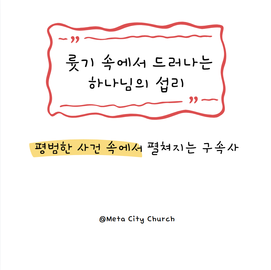 룻기는 평범한 삶 속에서 하나님의 섭리가 어떻게 작동하는지를 보여줍니다. 우리는 우리의 일상 속에서도 하나님의 계획과 섭리를 신뢰하며 살아가야 합니다.