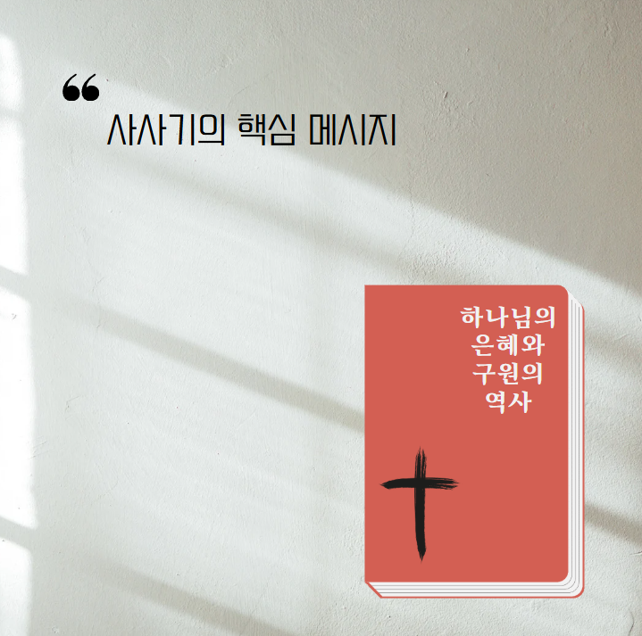 사사기는 인간의 반복되는 실패와 하나님의 끝없는 은혜를 담고 있는 책입니다. 이스라엘의 타락과 구원의 역사를 통해 우리는 하나님의 성품과 은혜를 깊이 깨달을 수 있습니다. 또한, 사사기의 이야기는 진정한 구원자이신 예수 그리스도를 바라보게 만듭니다.