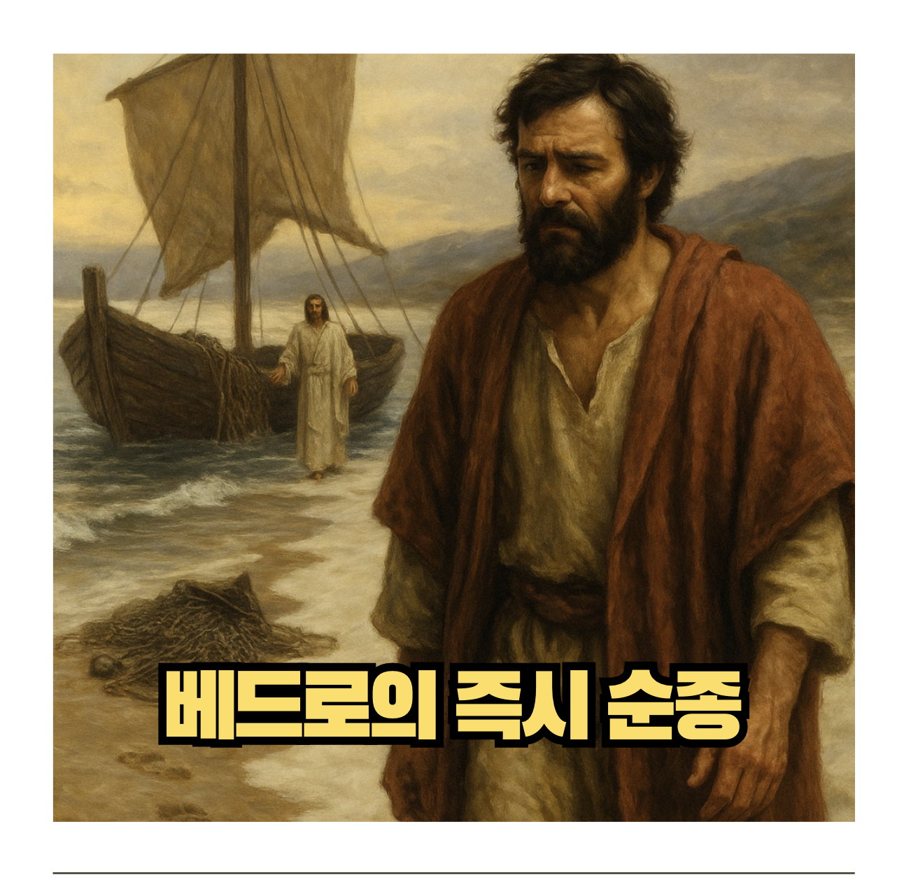 베드로는 그물과 배를 버립니다.