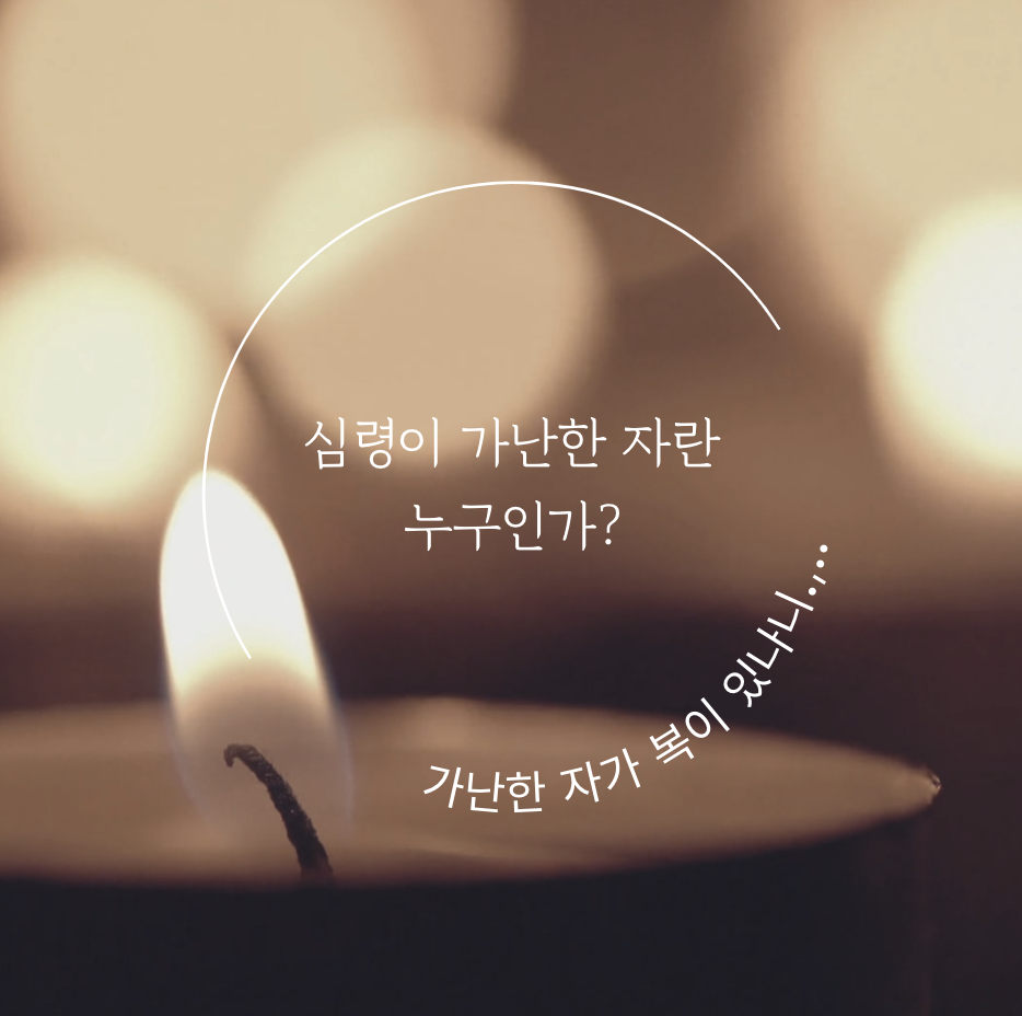 오늘은 "심령이 가난한 자가 받는 복" 에 대해 이야기하려 합니다.
