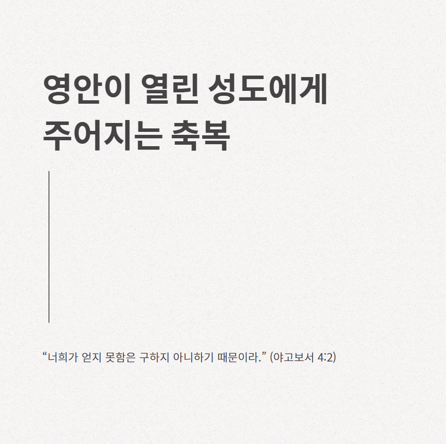 영안이 열리면 단순히 세상을 육신의 시각으로만 바라보지 않고, 하나님의 뜻과 섭리를 깨닫게 됩니다. 삶의 태도와 목적이 올바로 정립되고, 평안과 감사 속에서 기쁨을 누릴 수 있습니다. 그렇다면 영안이 열린다는 것은 무엇일까요? 그리고 우리는 어떻게 영안을 뜨고 살아갈 수 있을까요? 오늘 이 글을 통해 함께 깊이 묵상해보겠습니다.