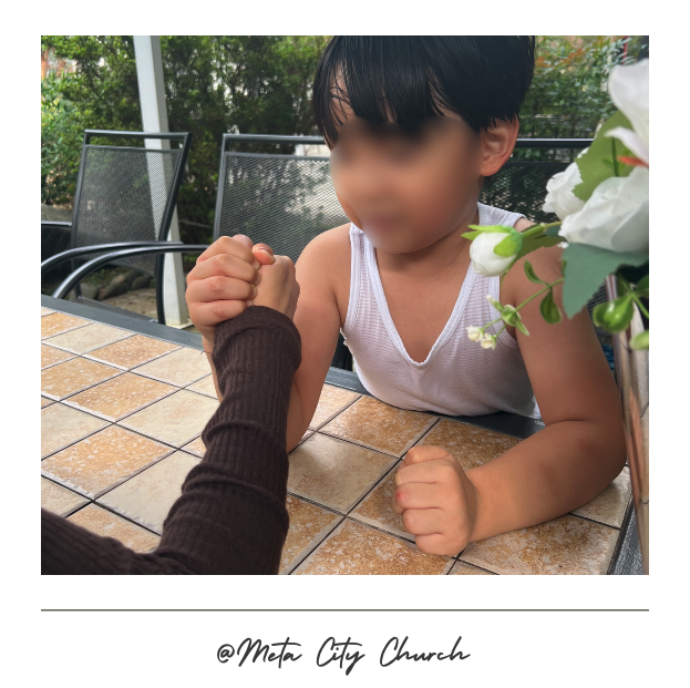 배부르게 먹고 난 아이들, 자연스럽게 팔씨름 대회로 이동!