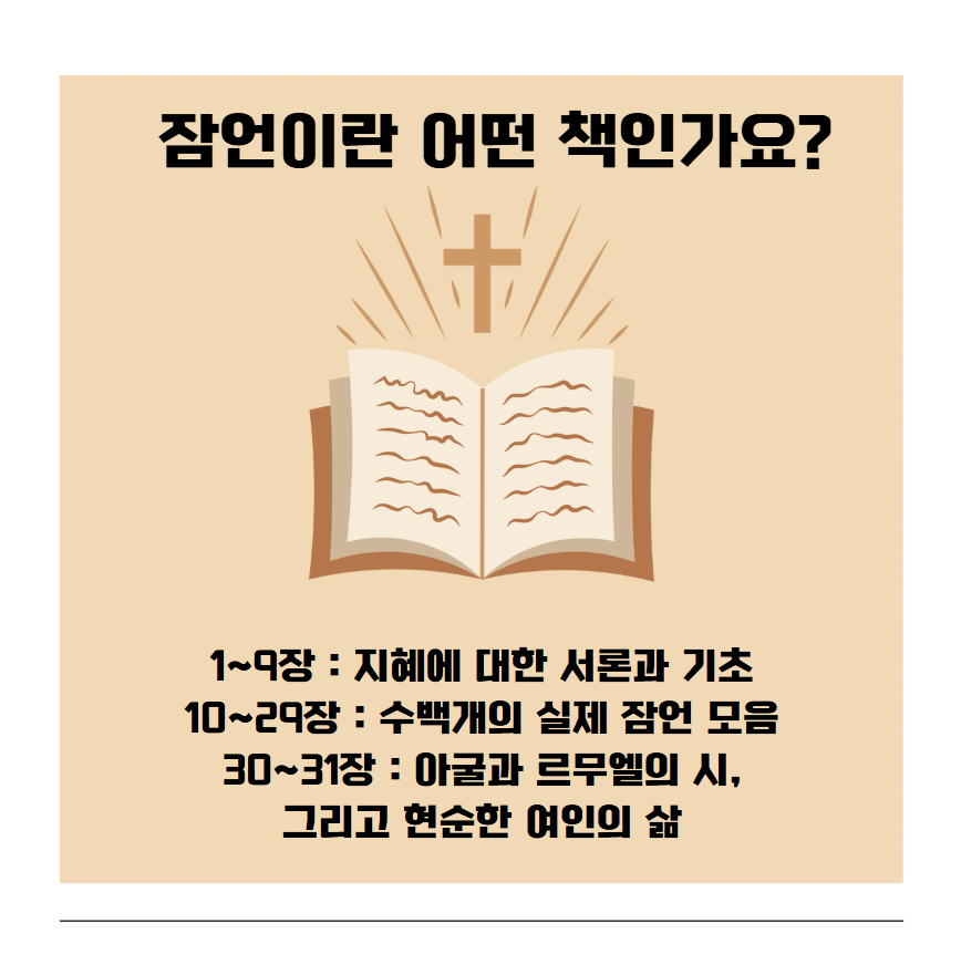 - 그리고 잠언은 **‘현숙한 여인’**이라는 시로 마무리됩니다.