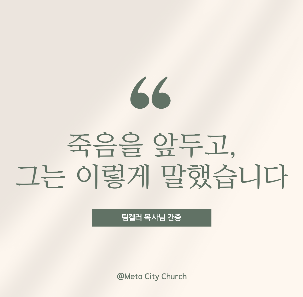 👤 팀 켈러 목사, 췌장암 말기 판정 이후의 고백