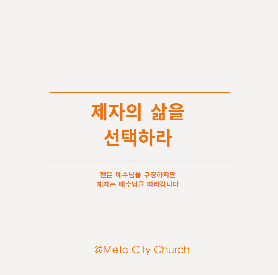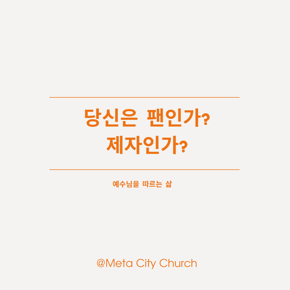 - 예수님은 단순한 팬을 원하지 않으십니다. 예수님을 따르는 제자를 찾으십니다.