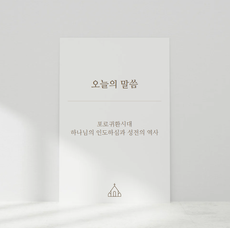 귀환시대는 단순히 역사적 사건이 아니라, 하나님의 신실함과 약속의 성취를 보여주는 중요한 시기였습니다. 성전을 통해 하나님의 임재를 기억하고, 포로 생활의 고난 속에서도 하나님의 인도하심을 배울 수 있었습니다.